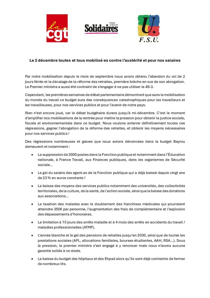 Le musée des horreurs du projet de budget doit être abandonné. Les exigences sociales doivent être enfin prises en compte !